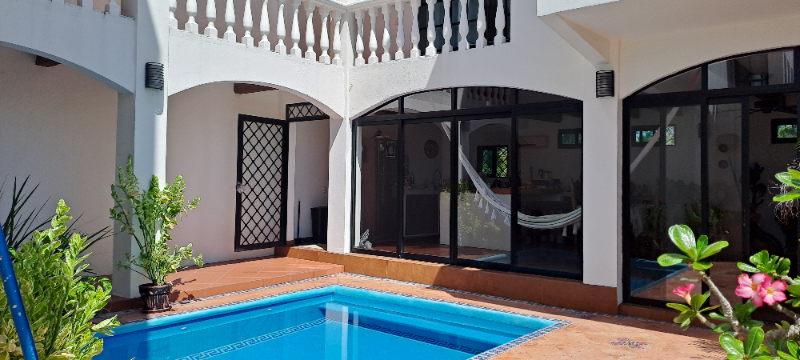 Hermosa casa habitación ubicada en Playa Larga, superficie de terreno, 270 m2, superficie de construcción 390 m2. Construida en 3 niveles y la siguiente distribución; Planta Baja: Sala-comedor, cocina, pasillo, cuarto de lavado,½ baño, escalera, 1 recámara con baño completo, cochera para 2 autos, pasillo, asoleadero y alberca. Primer Nivel: Recámara con baño completo, 2 recámaras, 1 baño completo. Planta alta: Terraza cubierta, bodega, recámara principal con baño completo y closet con vestidor. cisterna, a /a y ventiladores de techo. excelente mantenimiento. A 15 minutos del aeropuerto internacional y del centro de Zihuatanejo. Precio negociable!